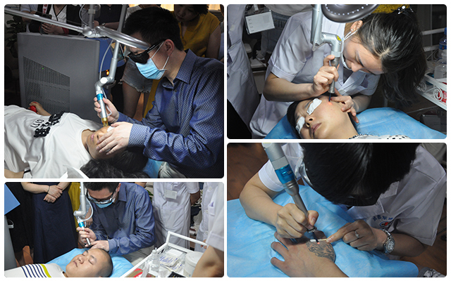 为了更好的向与会者展示以色列宝石之光的卓越性能,除了丰富的理论知识讲解外,军建也应邀了4名包括黄褐斑、晒斑、纹身、痣等在内的色素性皮肤问题顾客进行了案例实操。活动现场采取“3+1”的直播模式,即在治疗室内“医生实操+专人调参+主持人提问”,同时在过程中医生即时讲述患者情况与治疗方案,这让与会者能最大化的身临其境的观摩和学习,得到实实在在的提升。